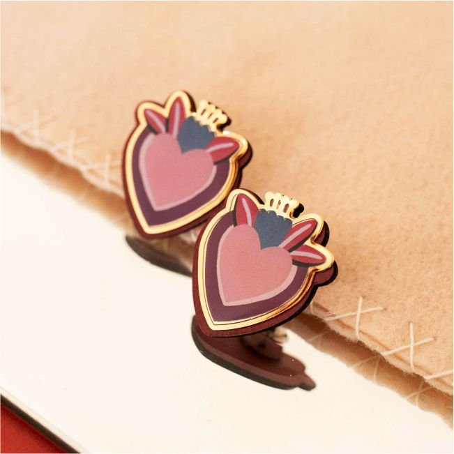 Brinco com pinos e tarrachas em prata Feito artesanalmente, com estampa exclusiva e resina manual.